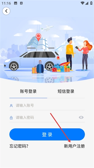 2、在登录注册页面点击【新用户注册】选项,进入注册流程。