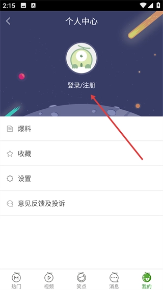 1、在个人中心页面点击【登录/注册】选项,进入登录注册界面。