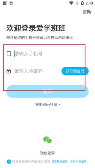 2、在登录界面,输入【手机号】并点击【获取验证码】,填入验证码后完成登录,未注册的手机号登录后会自动创建账号。
