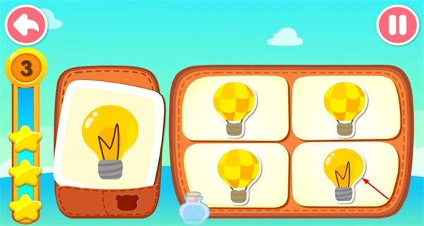 3、在游戏匹配界面,看到左侧灯泡图案和右侧四个灯泡选项,找到对应的灯泡图案并点击,进行图案匹配。
