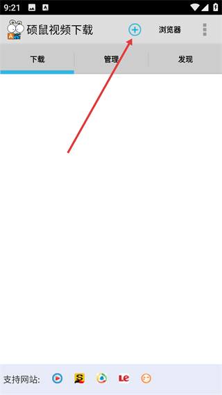1、在【硕鼠视频】页面点击顶部的加号按钮,进入网址输入页面。