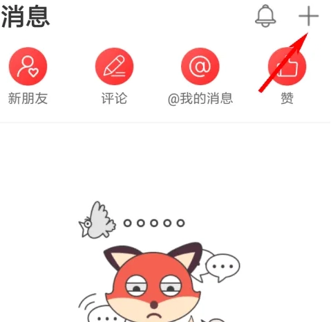 2. 登录后进入主界面,在消息区域点击右上角的“+”按钮;