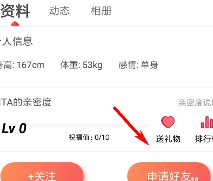5. 进入目标用户的个人页面,点击“申请好友”按钮;