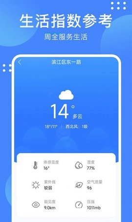 1能够为不同城市与区域提供天气信息服务,用户可随时切换查看自己需要了解的城市或区域的天气情况。