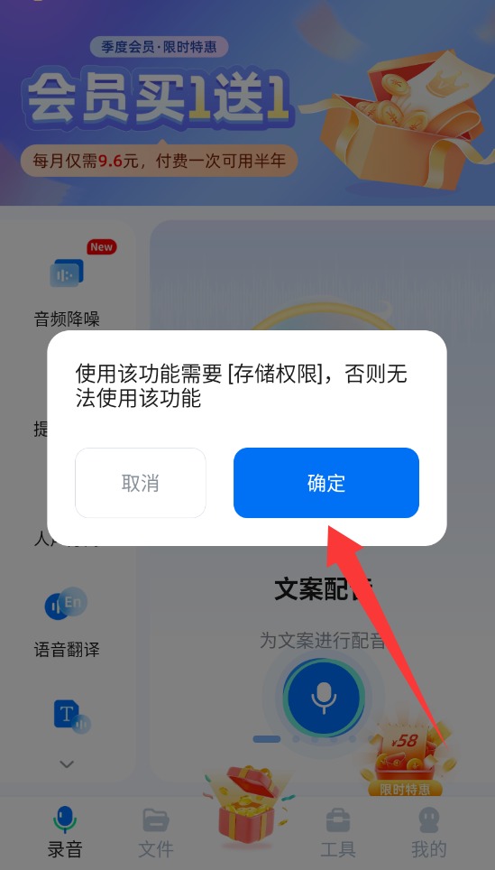 2. 按照提示开启存储权限,以保障能正常访问本地音频文件并对其进行编辑处理。