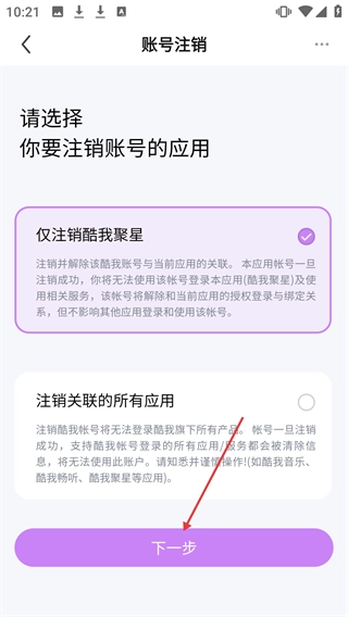 酷我聚星怎样注销账号
