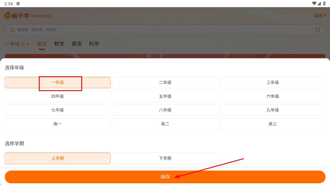 1、选定年级与学期后,点击【保存-功能按钮】,以此确认学习阶段。