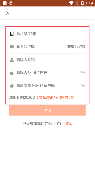 3、在登录界面中,若还没有账号,点击【注册】选项,就能进入账号注册流程,填写相关信息来创建新账号。