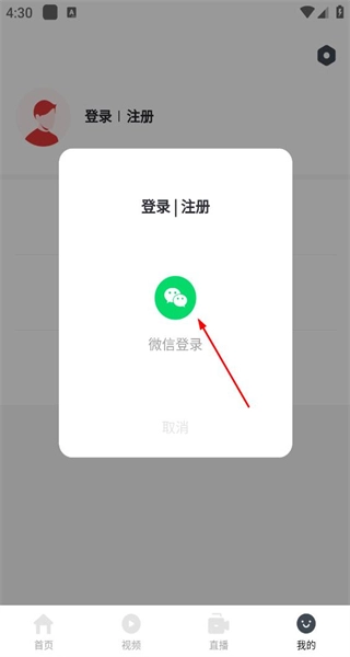 3、在弹出的窗口里选择微信登录选项,完成账号登录操作,以获取更多功能权限。