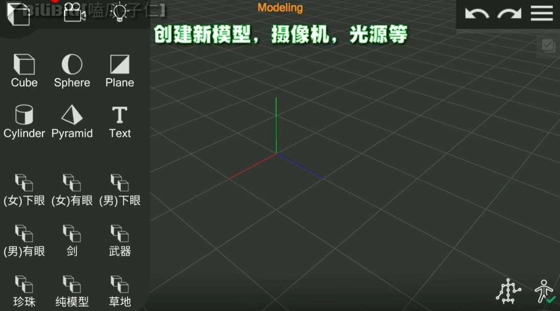 新增模型、摄像机和光源等元素。