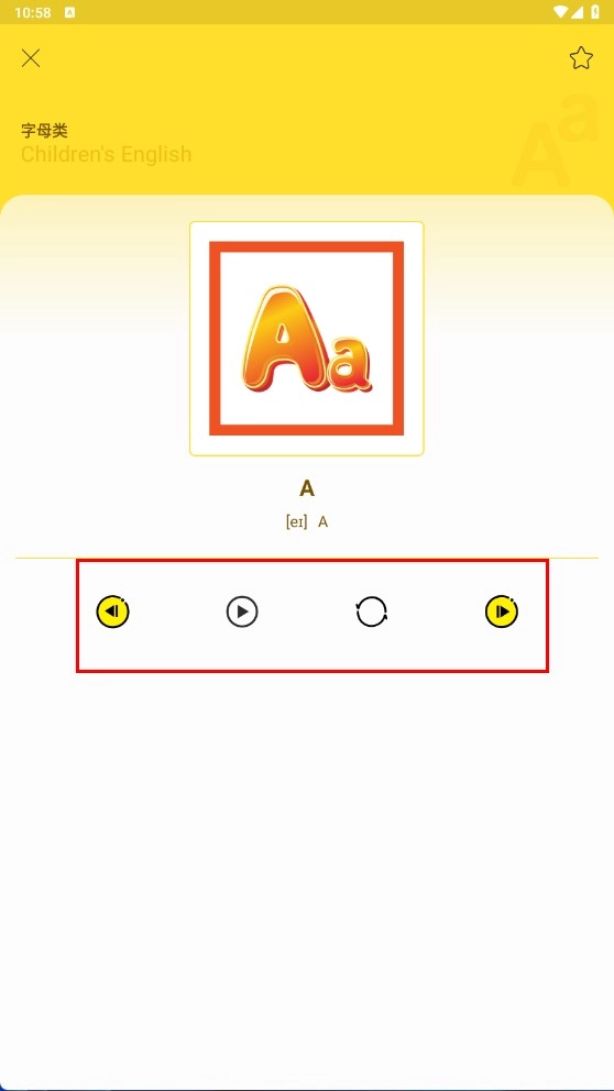 2、在字母学习界面,可查看字母【Aa-字母标识】,并使用下方功能按钮进行学习操作。
