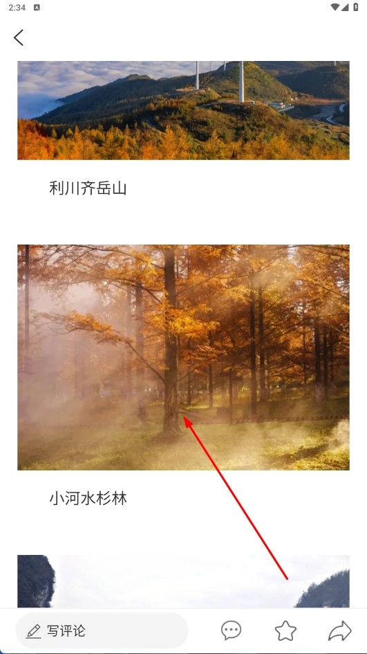 2、浏览【利川齐岳山】-【小河水杉林】等恩施风景,可写评论、点赞、分享相关内容。