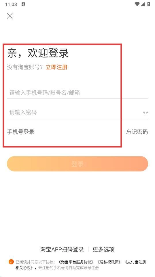 4、若选择账号密码登录方式,需输入手机号码、账号名或邮箱中的任意一种,再输入对应的密码,点击登录按钮即可完成操作。