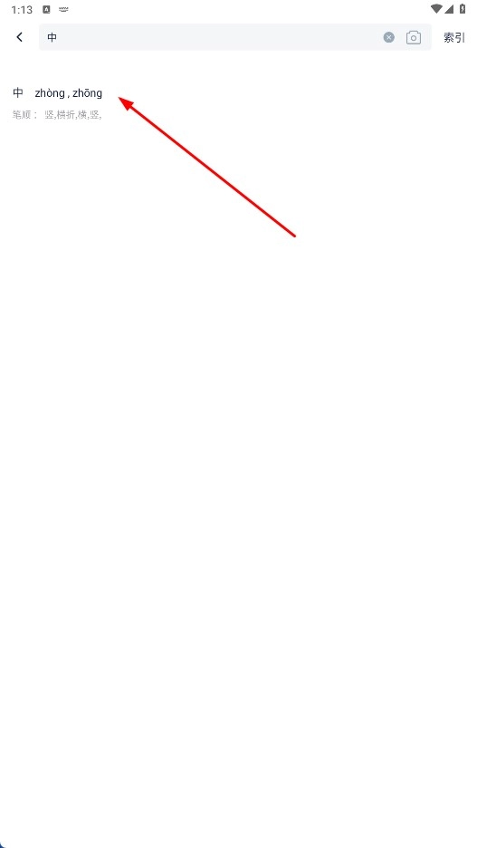 2、在搜索结果页面,点击目标汉字对应的【中-汉字名称】选项,即可进入该汉字的详情页面。
