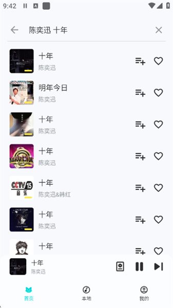 在搜索结果里点击你想播放的歌曲(比如《十年》),就能开始播放了。