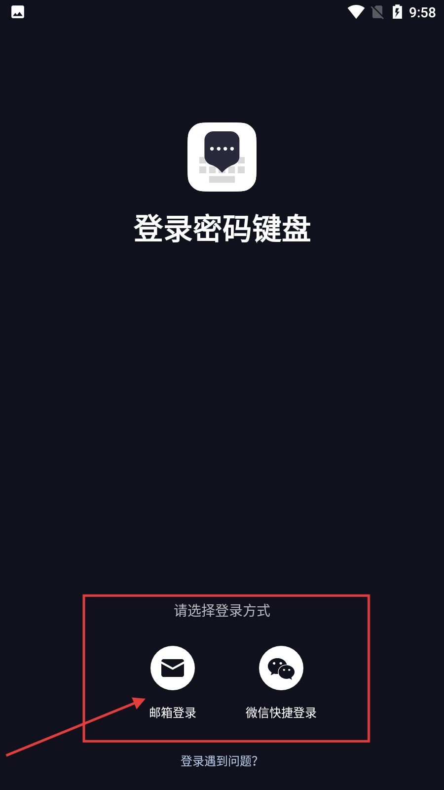 3、在登录密码键盘界面,可选择【邮箱登录】或【微信快捷登录】方式来登录账号。