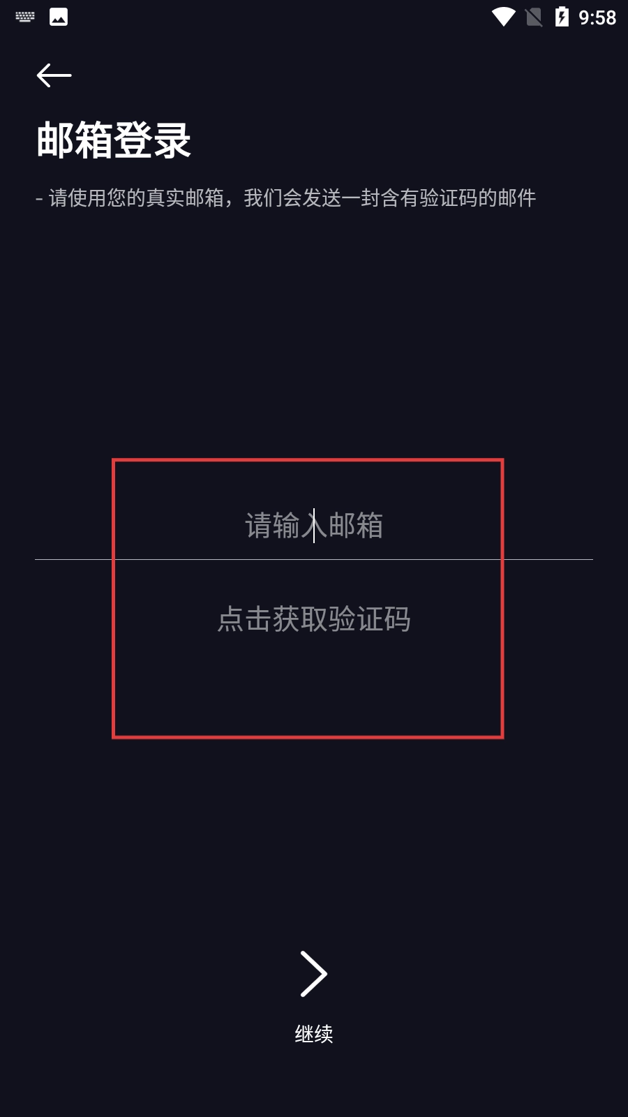 4、选择【邮箱登录】后,在相应界面输入邮箱并点击【获取验证码】,完成验证码输入等操作后即可完成邮箱登录。