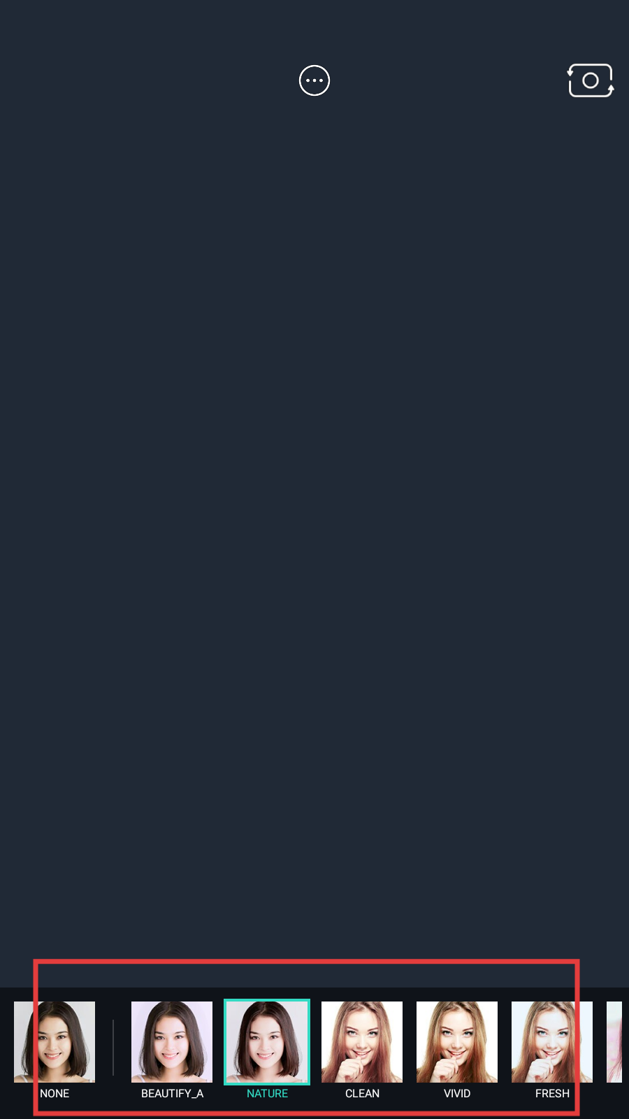 4、在美化风格选择栏,可选择【NONE】【BEAUTIFY_A】【NATURE】等多种风格,为照片打造不同的视觉效果。