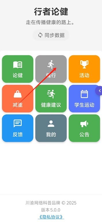 1、用户进入软件后,在首页点击“健行”,就能快速进入运动数据记录界面,以便开展后续操作。