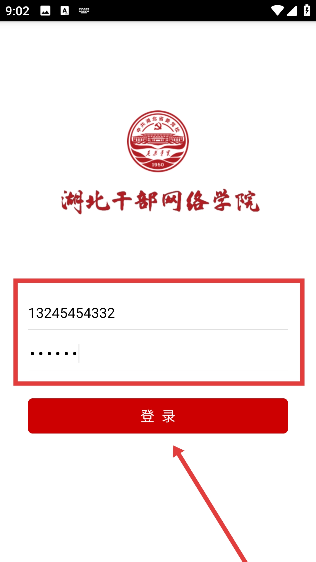 1、在【湖北干部网络学院】登录界面,输入账号【13245454332】和密码,准备登录。