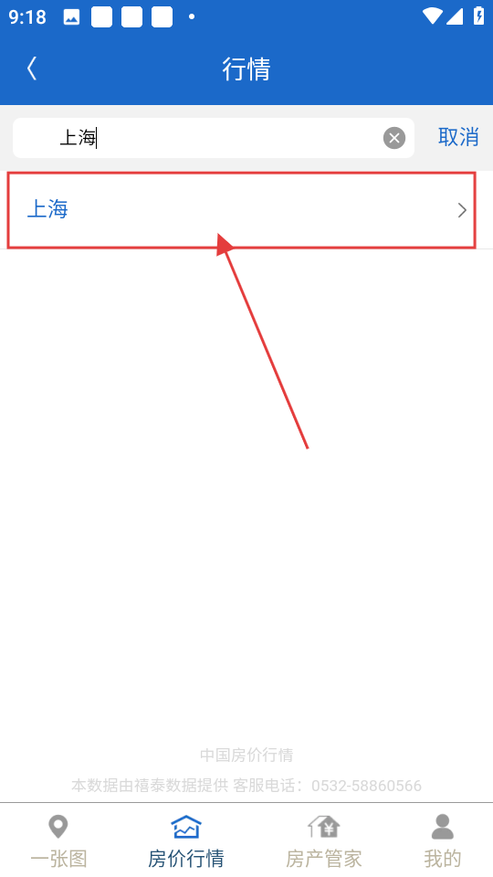 3、在输入框中填入“上海”后,点击搜索结果里对应的“上海”选项,就能进入上海房价的详情页面了。