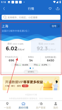 4、进入上海房价详情页面,能够查看房价、租金等相关数据,以便了解上海的房价行情。