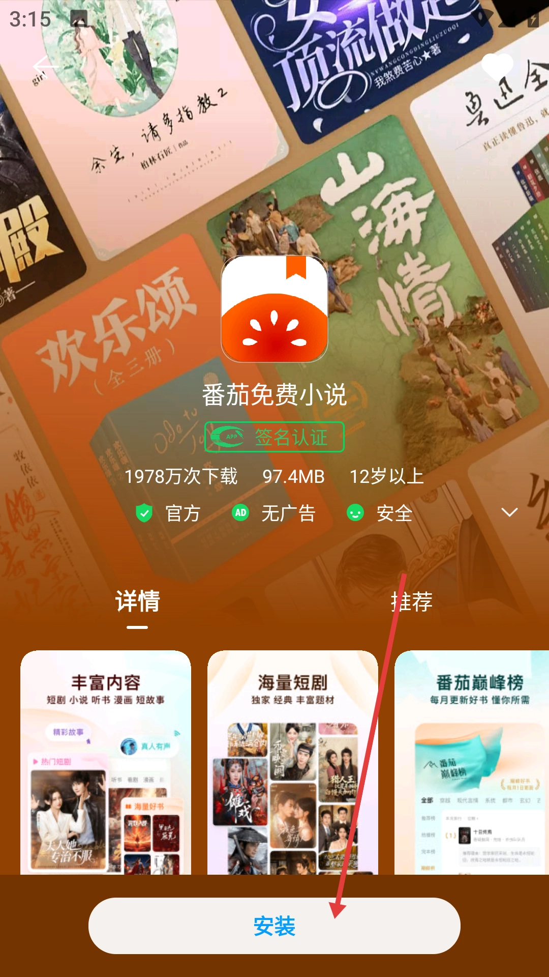 4、点击应用详情页的【安装】按钮,开始安装应用。