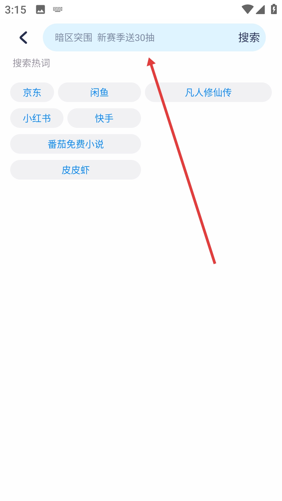 1、点击顶部搜索栏,进入搜索页面。