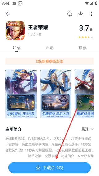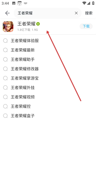 3、在搜索结果中选择目标应用,如《王者荣耀》应用。