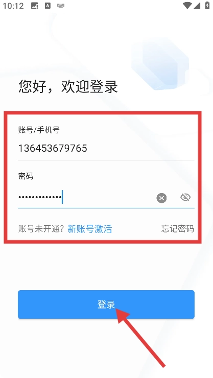 2、进入登录界面后,依次输入【账号/手机号】与【密码】,再点击【登录】按钮,即可完成登录操作。