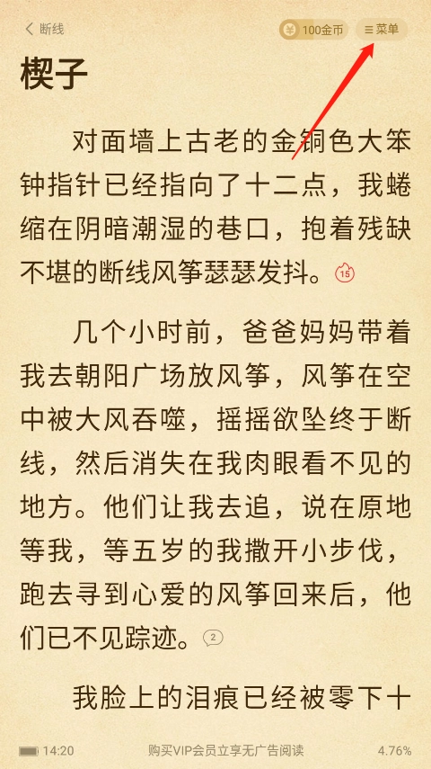 2、进入小说阅读界面后点击右上方菜单