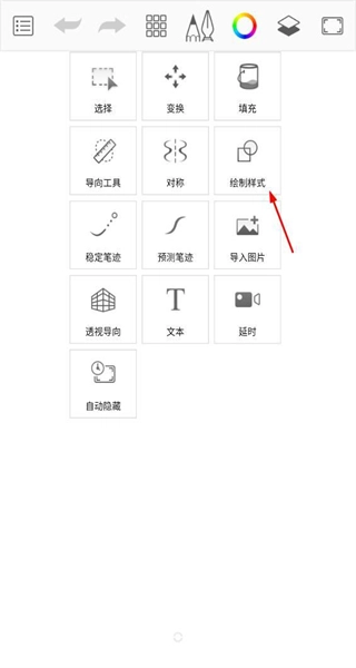 1、打开软件后,进入工具选择界面,可见选择、变换、绘制样式等多个工具选项,点击绘制样式。