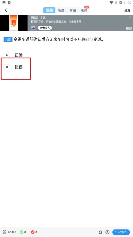 4、答题时,清晰判断【答案-B-错误】,熟练把握科目四的答题关键。