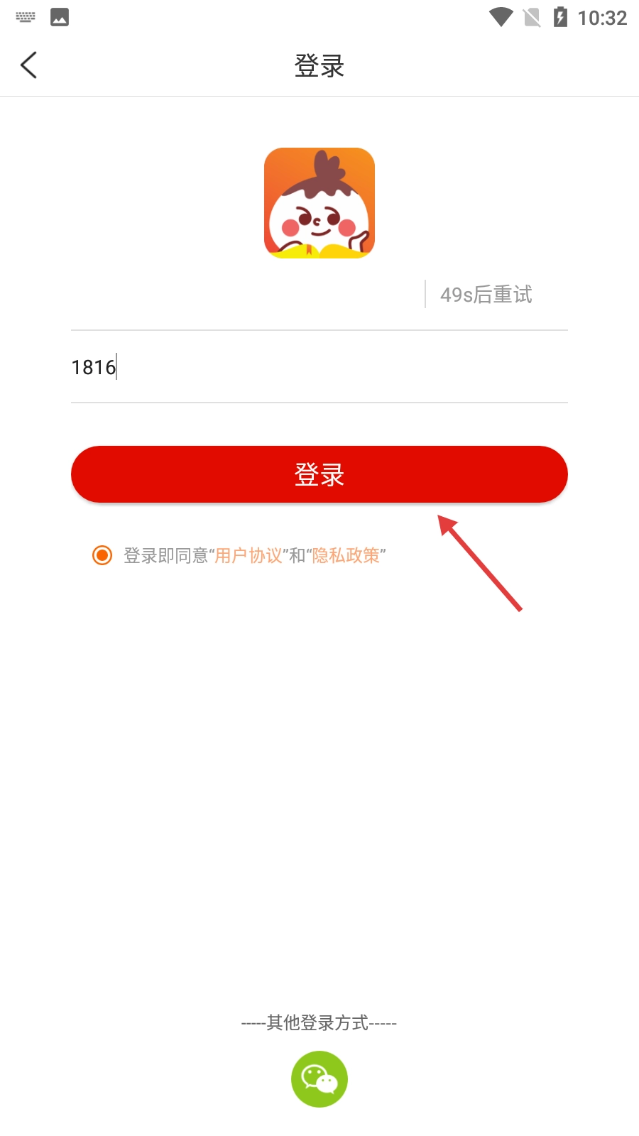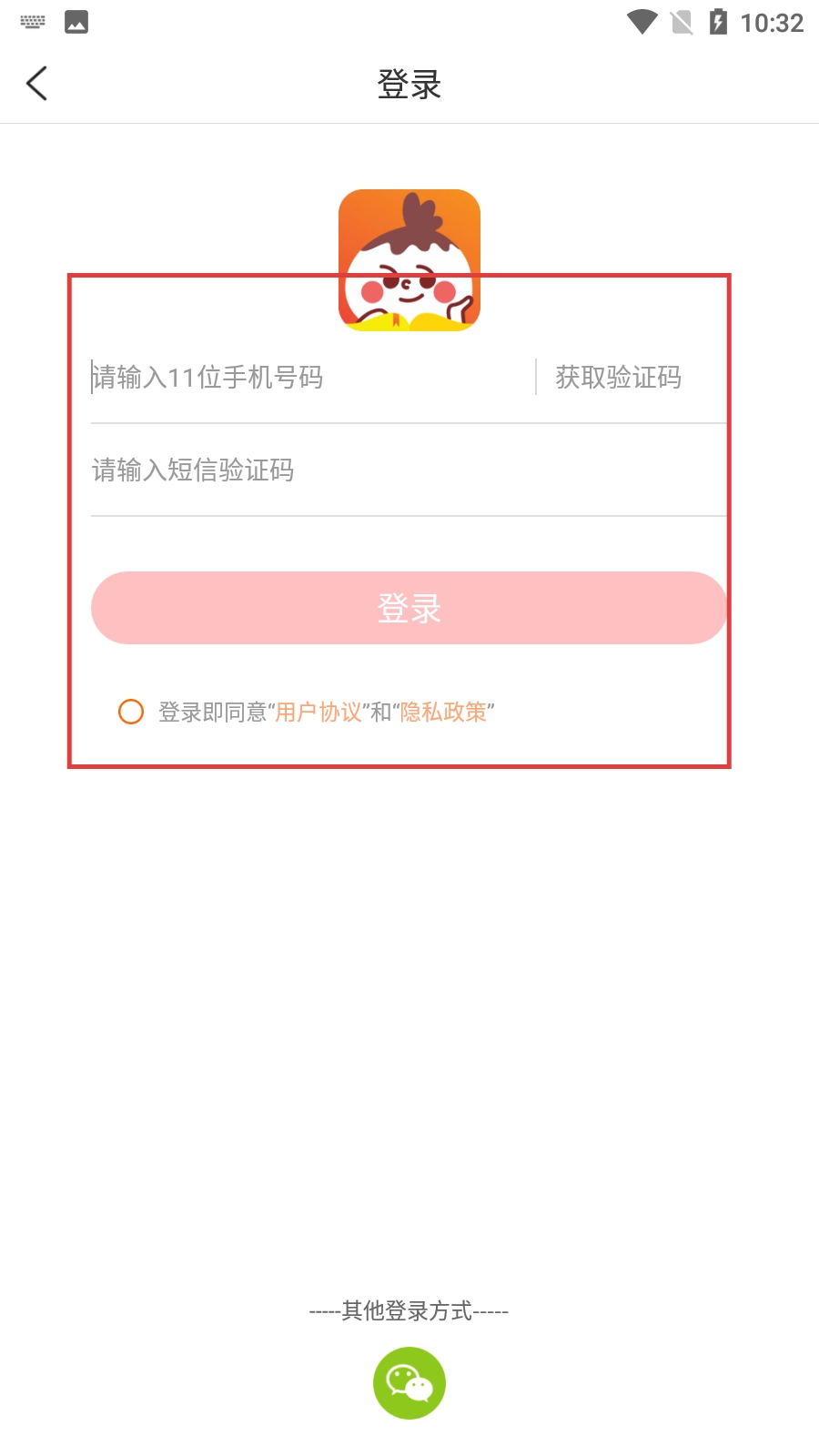4、输入手机号码和验证码,确认同意协议后,点击红色【登录】按钮,即可完成登录流程。