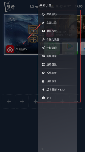 酷看桌面Tv版怎么切换主题
