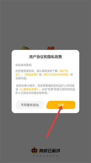 1、软件启动时,出现【用户协议和隐私政策】弹窗,点击【同意】按钮,进入软件使用流程。