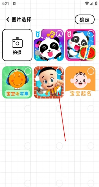 2、在图片选择界面,看到拍摄和多款图片选项,选择合适的图片,进入表情制作界面。