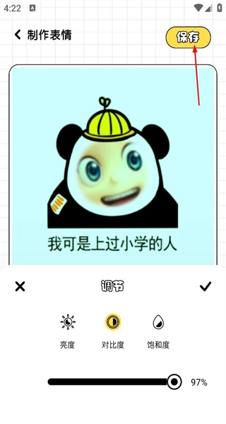 4、调整好表情效果后,点击右上角的保存按钮,完成这款表情的制作,可将其保存到本地或用于后续使用。