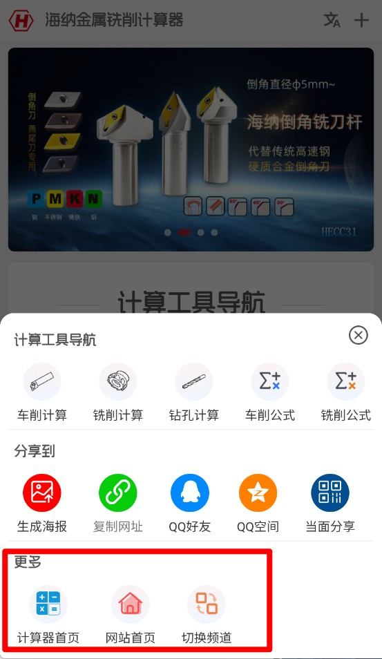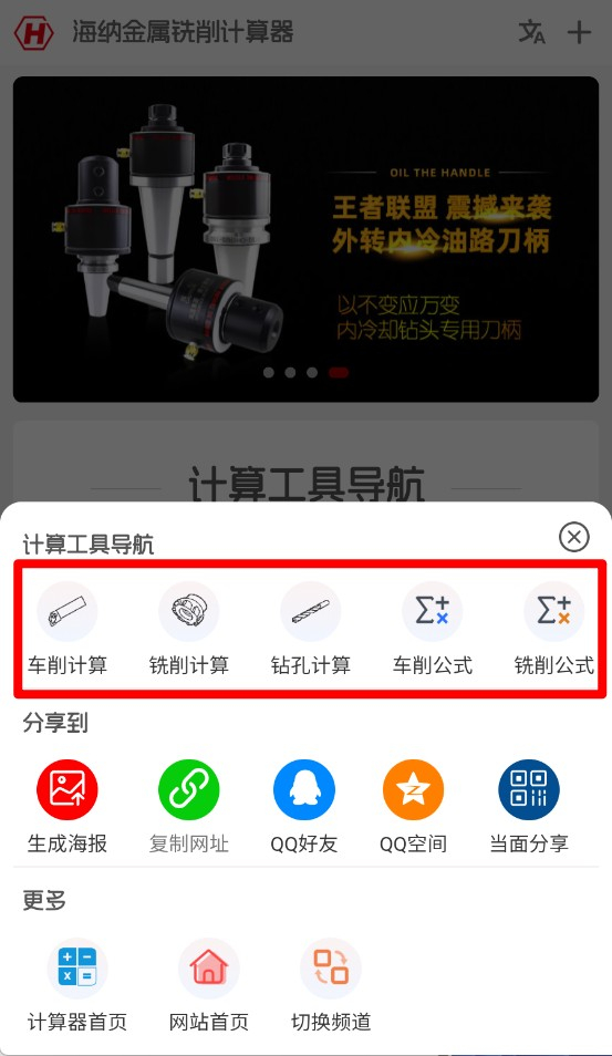 2、在菜单中选择车削、铣削、钻孔等计算工具使用。