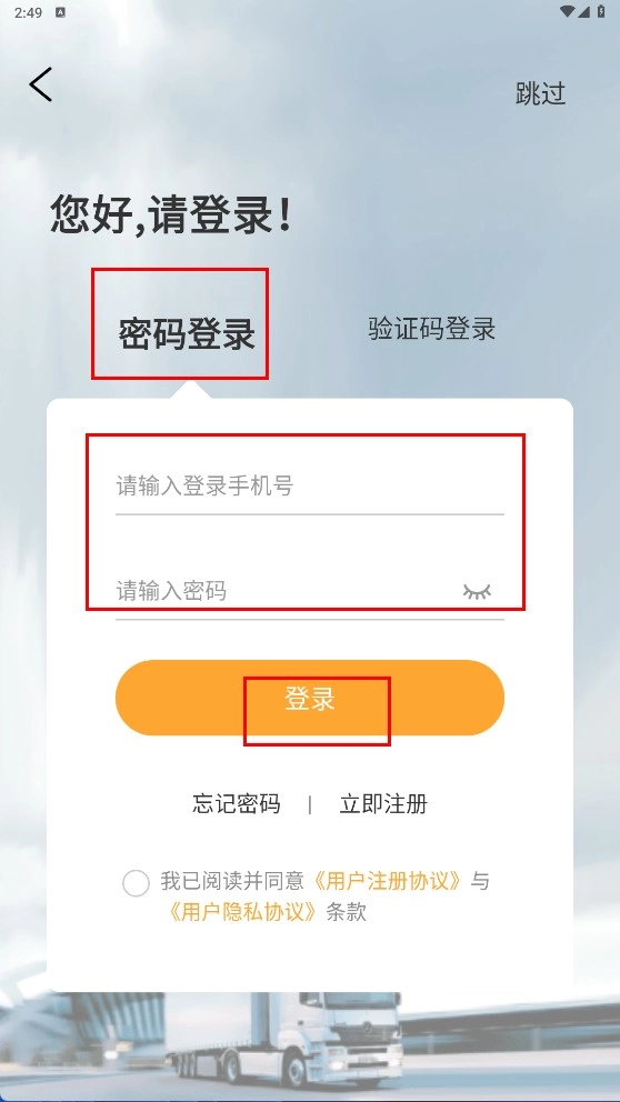 2、选择【密码登录】方式,输入登录手机号和密码,勾选相关协议后点击【登录】按钮,即可完成账号登录操作。