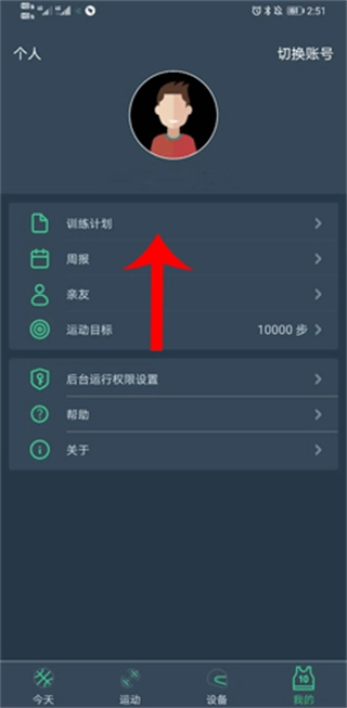 2、点击上方的训练计划。