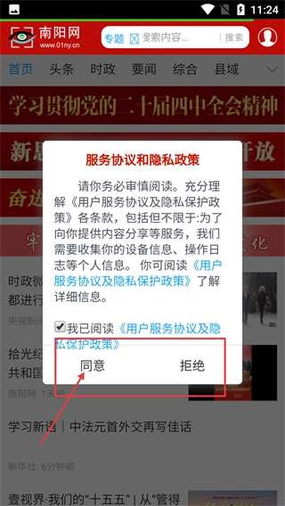 1、在弹出的【服务协议和隐私政策】弹窗中,点击【同意】按钮可继续使用软件。