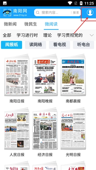 2、在【南阳网】界面,点击右上角的头像图标,可进入对应页面,推进后续的登录相关操作流程。