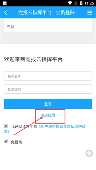 3、进入【会员登陆】页面后,点击【注册账号】选项,即可进入会员注册的信息填写界面。