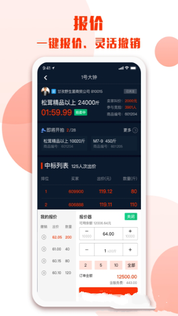 这款专注于雅江松茸的交易服务平台,整合了从产品分级筛选、线上交易、信息发布到仓储加工、冷链配送的全链条功能,既是依托互联网技术搭建的B2B松茸交易与结算平台,也是国内规模领先、专业性突出的产地直供松茸拍卖市场。平台构建了完善的质量检测体系与标准化交易规则,其自主研发的拍卖系统支持买家线上竞拍、卖家货品管理,同时覆盖现场运营与财务管理等环节,实现了交易信息、资金流转与物流配送的闭环管理,有效提升了运营效率并降低成本。无论是卖家的线上管理需求,还是专业高效的交易体验,都能在这里得到满足。