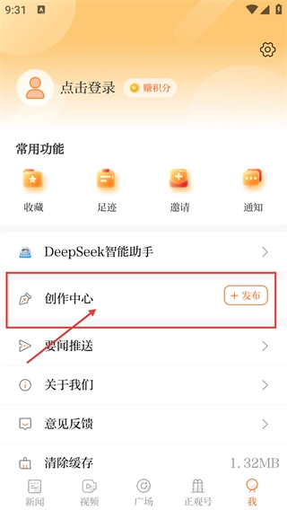 1、在【正观】软件的主界面中,点击底部导航栏的【我】按钮,就能进入个人功能页面,以便为后续的创作相关操作做好准备。