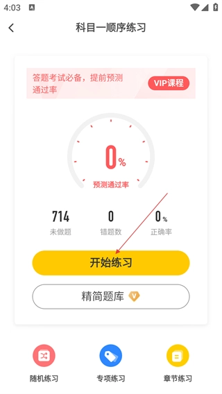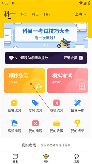 进入科目一页面后,找到并点击【顺序练习】选项,即可进入科目一顺序练习的准备界面。