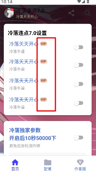 1、启动《冷落连点器》进入主界面,找到屏幕上黄色圆圈标记的激活入口,点击该入口后依照提示完成功能激活步骤。