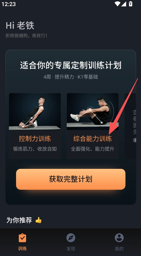 1、打开软件,选择综合能力训练等专属计划,获取完整训练安排。