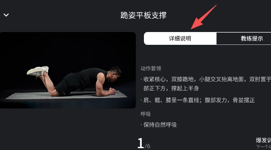3、点击动作,查看详细说明(动作要领、呼吸等),开始科学训练。